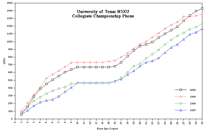 N5XU participated in the Collegiate Championship conducted during the weekend of 18-19 November 2000. We operated in the Multioperator Single Transmitter (M) class, with KB5LBN, W5JLP, N3TNN, K5PI, KT5I, and WM5R operating.