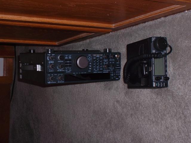The dead Kenwood TS-850SAT and an Alinco IC-706MkIIG pulled out from Gary KM5TY's truck and pressed into temporary service while awaiting the Yaesu FT-1000MP.