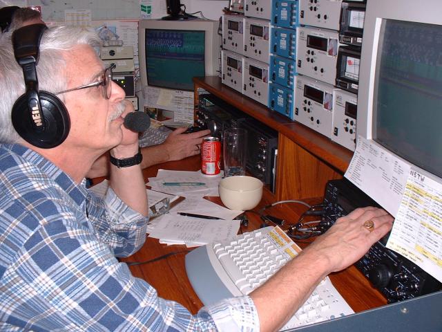 Ken WM5R, hanging out at "command central." This station was equipped with an Elecraft K2 that could use the beverages when they weren't being used by the transmitting stations.