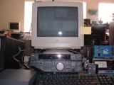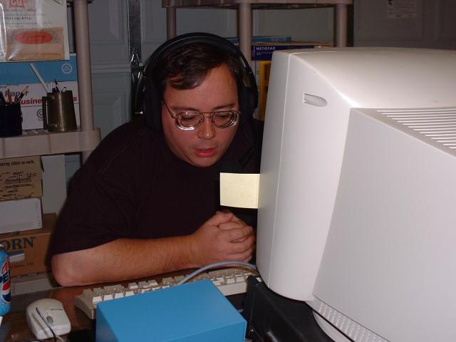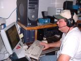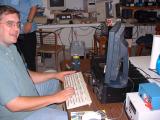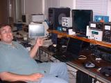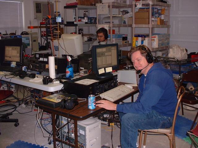 Scott Pederson KI5DR wrestled with the computer networking situation up until the very last minute before the start. The collection of logging computers brought to the station for the weekend included machines with Windows 98, Windows 2000 Pro, Windows XP Home, and Windows XP Pro. Eventually, all of the computers were networked using Writelog for Windows except the 40 meter computer (the Windows XP Home system.) |