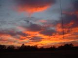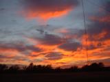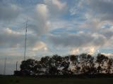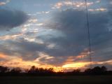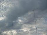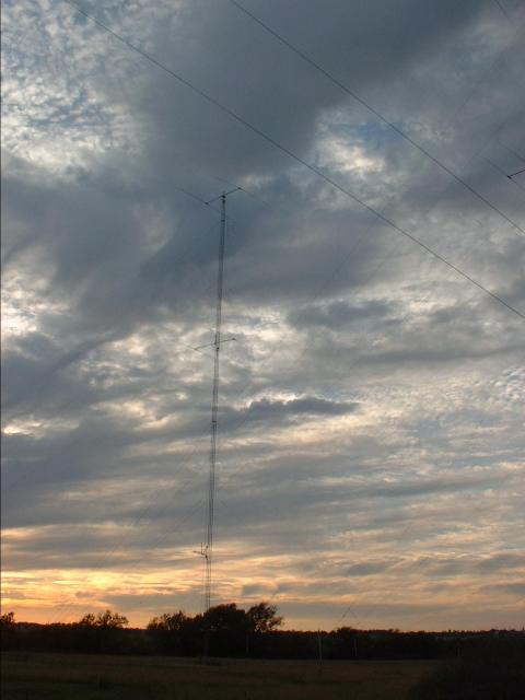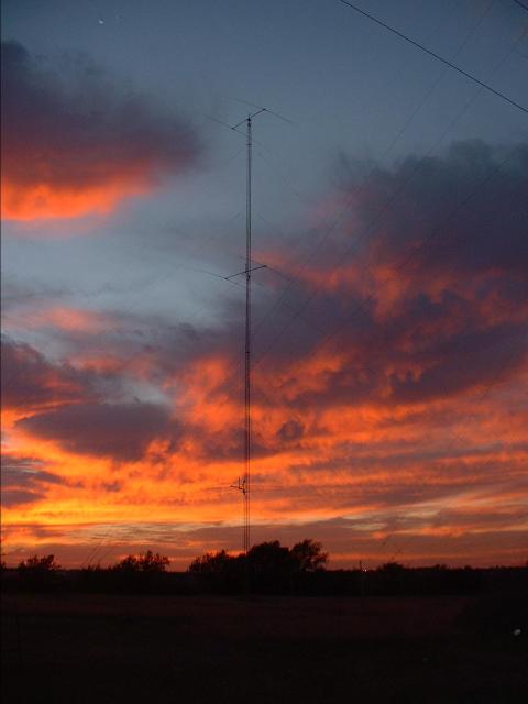 The middle yagi on this tower is fixed at 45 degrees, and the top one rotates. The top antenna was probably at about 60 degrees when this photo was taken around 2345 UTC Friday night. |