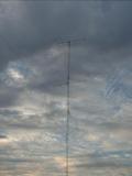 A view of the top of the 20 meter tower. Just below the frame is a Cushcraft XM510 five-element monobander for 10 meters that was installed on Tuesday before the contest. |