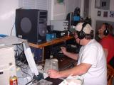 Scott Pederson KI5DR, operating at the 20 meter station. Scott did tremendous work getting the computers and logging software going before the contest. |