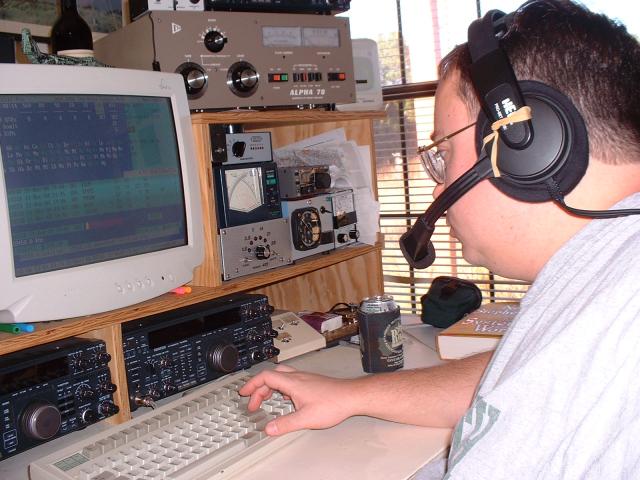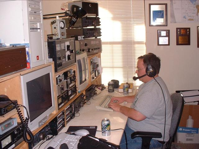 George set up the station in the usual two-radio mode, although with both radios on the same band, I could not listen while transmitting.