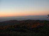 The view to the south. The body of water is Monterey Bay. The city of Santa Cruz is just off-frame to the right. The city of Monterey is located near the point of land on the far side of the bay,