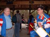 Early in the morning on April 9, competitors are awaiting the bus that will take them to the start area for the eighty meter competition. The outside air temperature felt like it was just above freezing. |