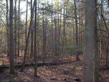 Another example of the typical forest encountered in the park. High winds from Hurricane Fran in 1996 knocked down many mature trees in the park, such as the one here. In some areas, the fallen trees made straight-line travel through the woods very difficult. |