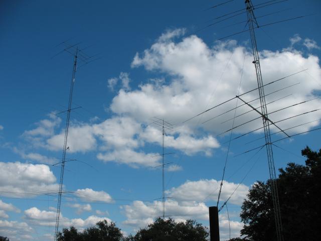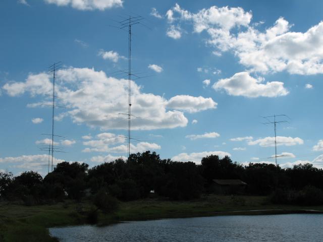 Three of the towers at W5KFT. The ranch escape damage from massive windstorms in June that destroyed other contest stations just a few dozen miles to the south.