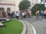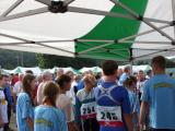 Some competitors mingling at the start area. Although some are wearing sweatshirts, the outdoor temperature was probably already warmer than 70°F.