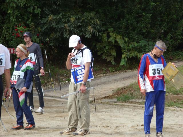 Runners from a variety of countries. The gentleman with the 144 MHz receiver in the center of the photo is wearing the team kit of Germany.