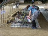 Some members of Team Japan, waiting for the buses. The fountain they are sitting on was turned off during the night and had not yet been turned on that morning. I don't know what the small sign says - probably "keep off the grass".