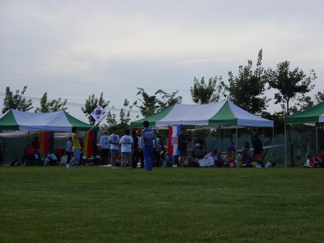 Yoo brought a tent with him for us to sit in during the six or seven hours of the competition. It was purple and cyan, which required a certain amount of effort to camouflage.