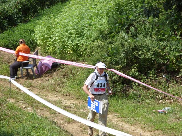 Charles Scharlau NZ0I (M40) from Team USA runs in. Charles found three transmitters, but finished 37 minutes overtime.