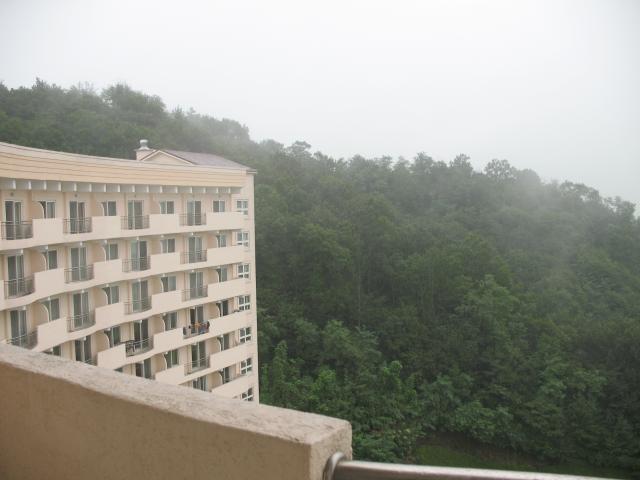 We had a room on the 19th floor. This was the view from our balcony, looking at the hotel and the woods behind it.