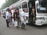 Everyone unloading from the buses at the practice area. Most people carried their 144 MHz receivers in hand, and brought their 3.5 MHz receivers in bags or backpacks.