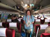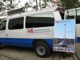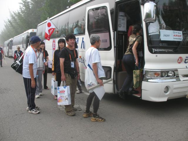 Nadia Scharlau getting on the bus. Nadia ran in the W35 (women, ages 35 and older) category. Nadia won a bronze medal at the 2006 World Championships in Bulgaria - the first American to medal at a world championships. Nadia had a more difficult time in Korea - she would finish 15th on 144 MHz and 9th on 3.5 MHz.