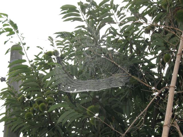 A big spider web, probably a meter across. We saw some very big spiders in the woods.