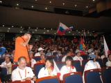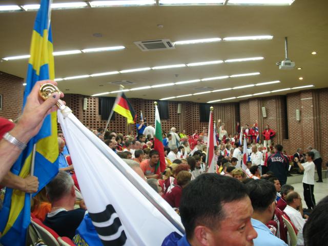 The performance hall begins to fill up with competitors, observers, and officials. Every team brought along their national flag for the ceremony.