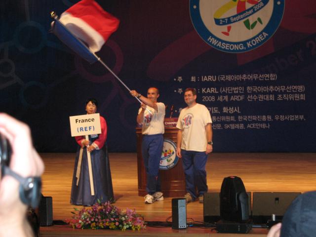 Team Belgium brought five competitors to the championships. Every team had a banner with its name (in English) and IARU member society abbreviation on it carried by a woman in traditional hanbok.