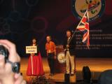 Next, came the parade of nations. Each country sent up to two team members with their national flag across the stage. In the case of Australia, that was the entire team. Bryan Ackerley VK3YNG is carrying the flag, while Bruce Paterson VK3TJN follows.