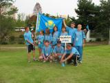 Team Kazakhstan, out on the lawn in front of the performance hall.