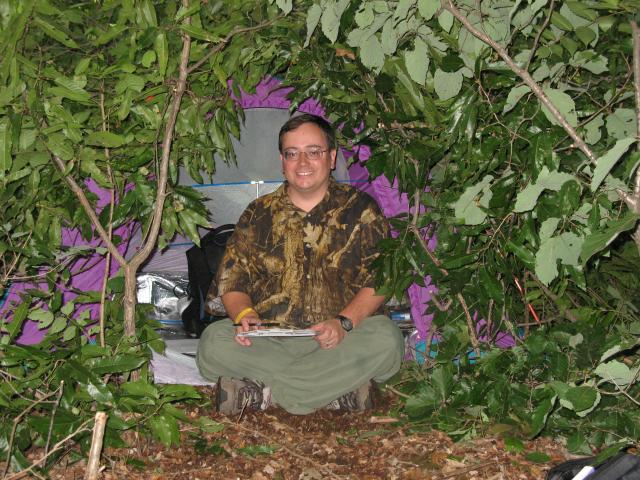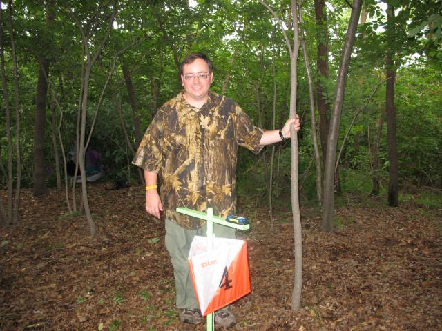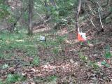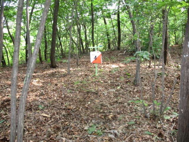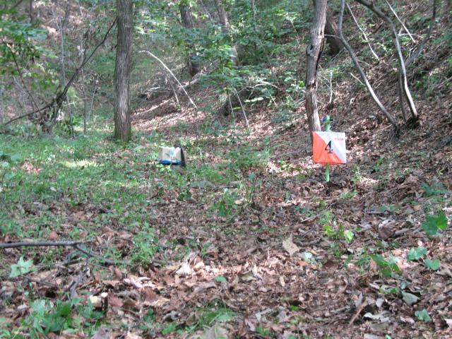Transmitter location four (MOH) about an hour before the first runner arrives. The transmitter location was surrounded by moderately thick woods about 200 meters from a trail junction.