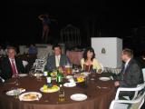 A garden party at the hotel followed the 3.5 MHz awards ceremony. Panayot Danev LZ1US, an international juror from Bulgaria (far left) and Ole Garpestad LA2RR, the president of IARU Region I and an international juror from Norway (far right) are dining with two of the Korean organizers. Every table at the party had endless beer and soju.