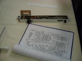 A homebrew two meter receiver designed and built by Nick Roethe DF1FO, next to its schematic diagram. This was probably one of the most sophisticated receiver designs at the competition. |