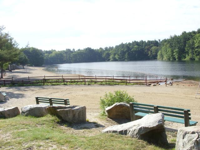 The parking lot was a short walk from Houghton's Pond, which had a nice beach with a designated swimming area and a small visitor center with restrooms. |