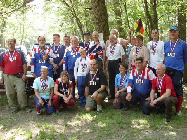 Most of the medal winners in this year's competition (some had to leave early to catch airplanes). From left-to-right, back row: Matthew Robbins AA9YH (Ohio), Bob Cooley KF6VSE (California), Leszek Lechowicz NI1L (Massachusetts), Igor Kekin (Russia), Dick Arnett WB4SUV (Kentucky), Dale Hunt WB6BYU (Oregon), David Williams M3WDD (England), PA Nordwaeger SM0BGU (Sweden), Nick Roethe DF1FO (Germany), Jen Harker W5JEN (Texas), Brigitte Roethe (Germany), Matthias Kuehlewein DL3SDO (Germany), and Jerry Boyd WB8WFK (New Mexico). Front row: Ruth Bromer (North Carolina), Lori Huberman (Massachusetts), Addison Bosley (Kentucky), Harald Dettling DC1GB (Germany), Susanne Walz DG4SFF (Germany), Bob Frey WA6EZV (Ohio), and Nikolay Ivanchihin UR8UA (Ukraine). |